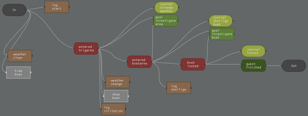 The decisions per plea may lead to different nodes, so overall we’ve got a signal based quest system quite similar to the one above.