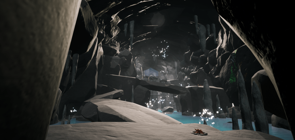 When the player leaves the initial chamber, she gets a look up through the whole cave. The cave, as the whole game, has a constant, repeating drive upwards. The specific atmosphere encountered is an example for the other specific atmospheres found in the game.