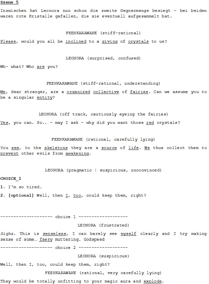 - regular features: text/speech, (timed) choices, nonlinear paths, a facts database, ..
